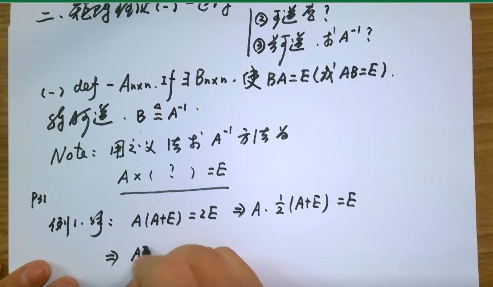逆阵的求法,可逆是前提 行列式不为0,旁边构造单位阵,将左边矩阵通过行变换变为单位阵,右侧矩阵即为原阵的逆矩阵 禁止列变换