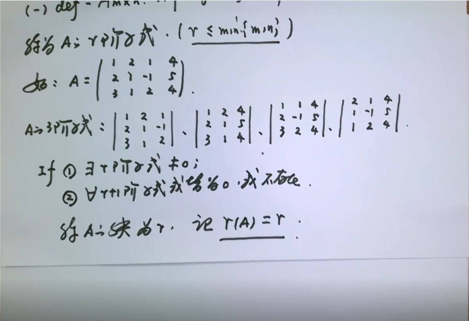 定义 最重要的一句话: 两个条件,其一 存在r阶子式不为0 ,其二 对于任意的r+1阶子式,要么不存在要么为0