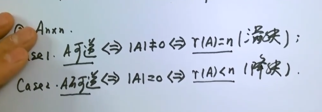 特殊的,对于方阵,这个性质延展思考一下, 若该方阵可逆,那么行列式不为0,既然行列式不为0,则说明存在n阶子式不为0,且n+1阶子式不存在,那么这个矩阵的秩就是n,也称满秩