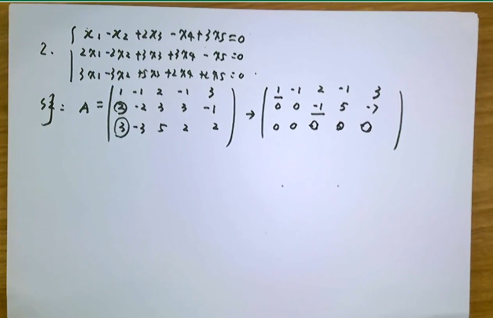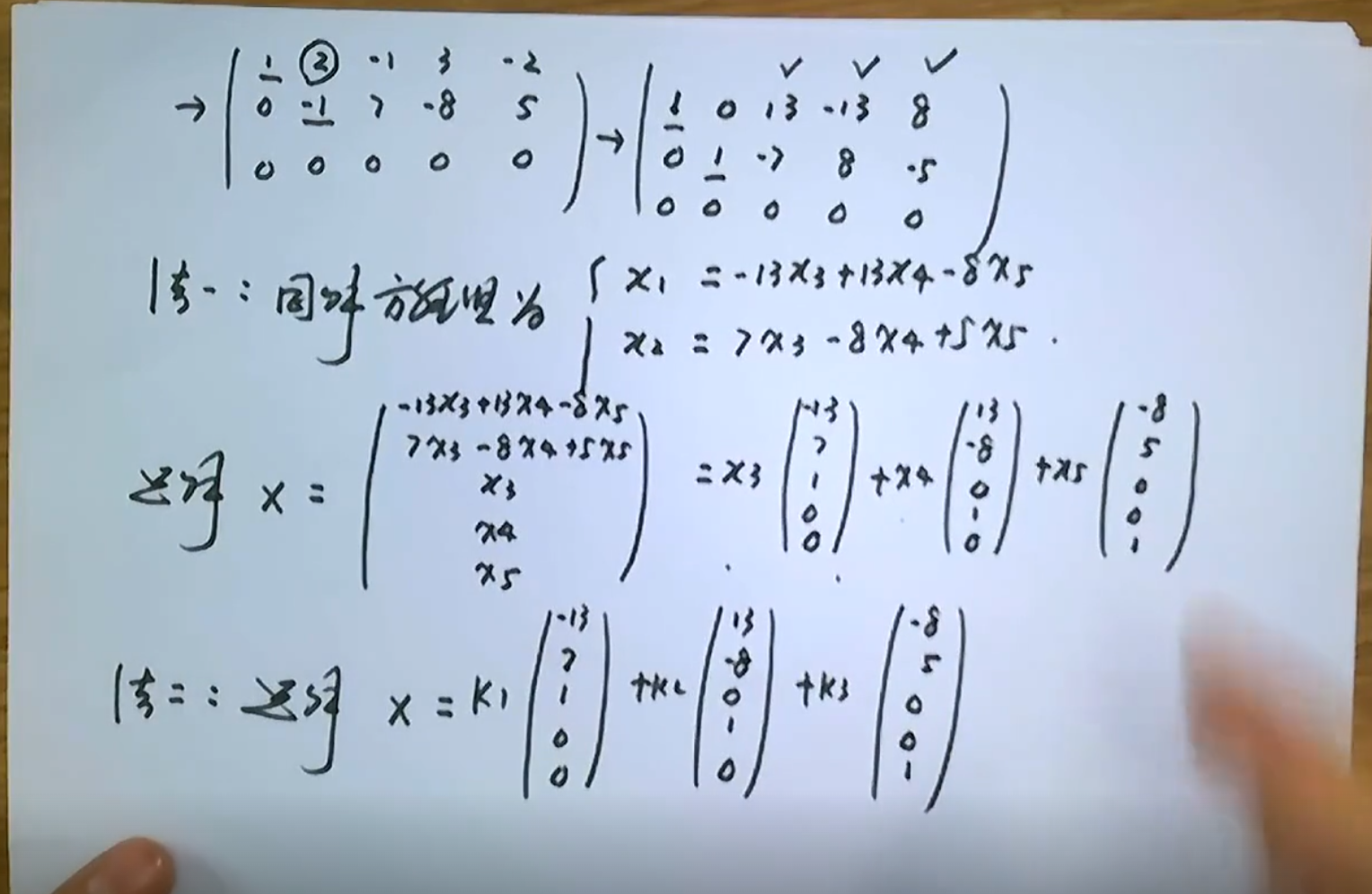如何选取自由变量?一般选择非行阶梯处的数为自由变量,从上往下看,下面三个100 010 001