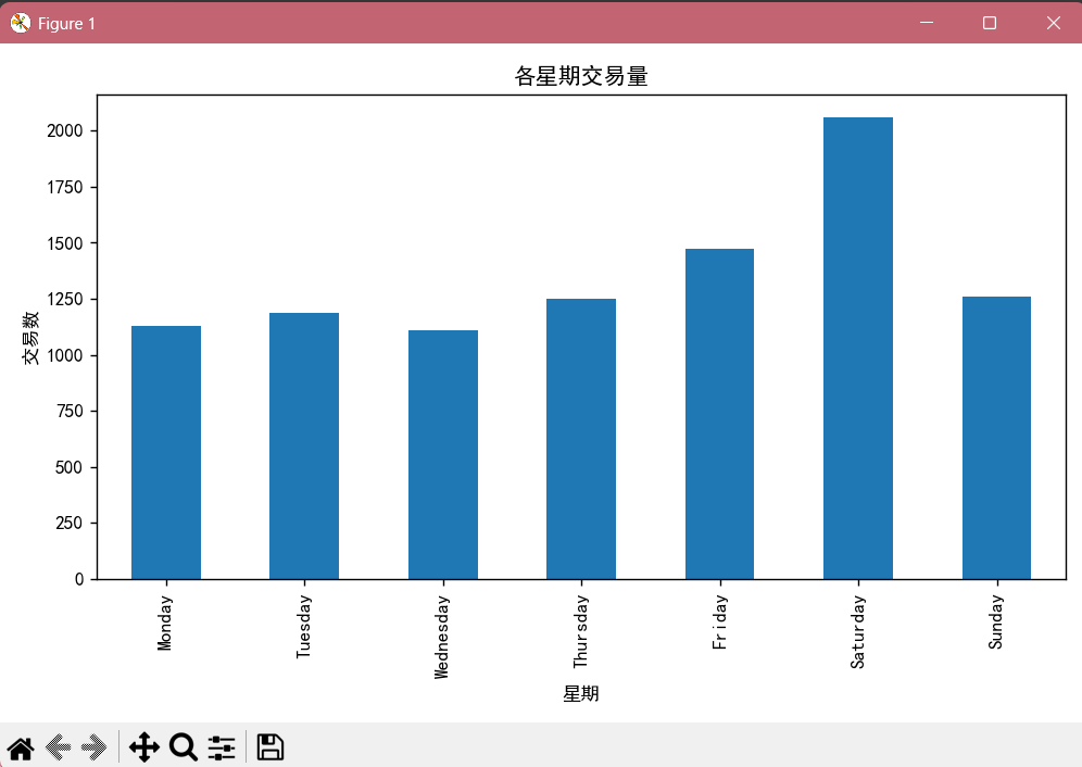 - 周末交易量显著高于工作日,可在周末增加促销活动。