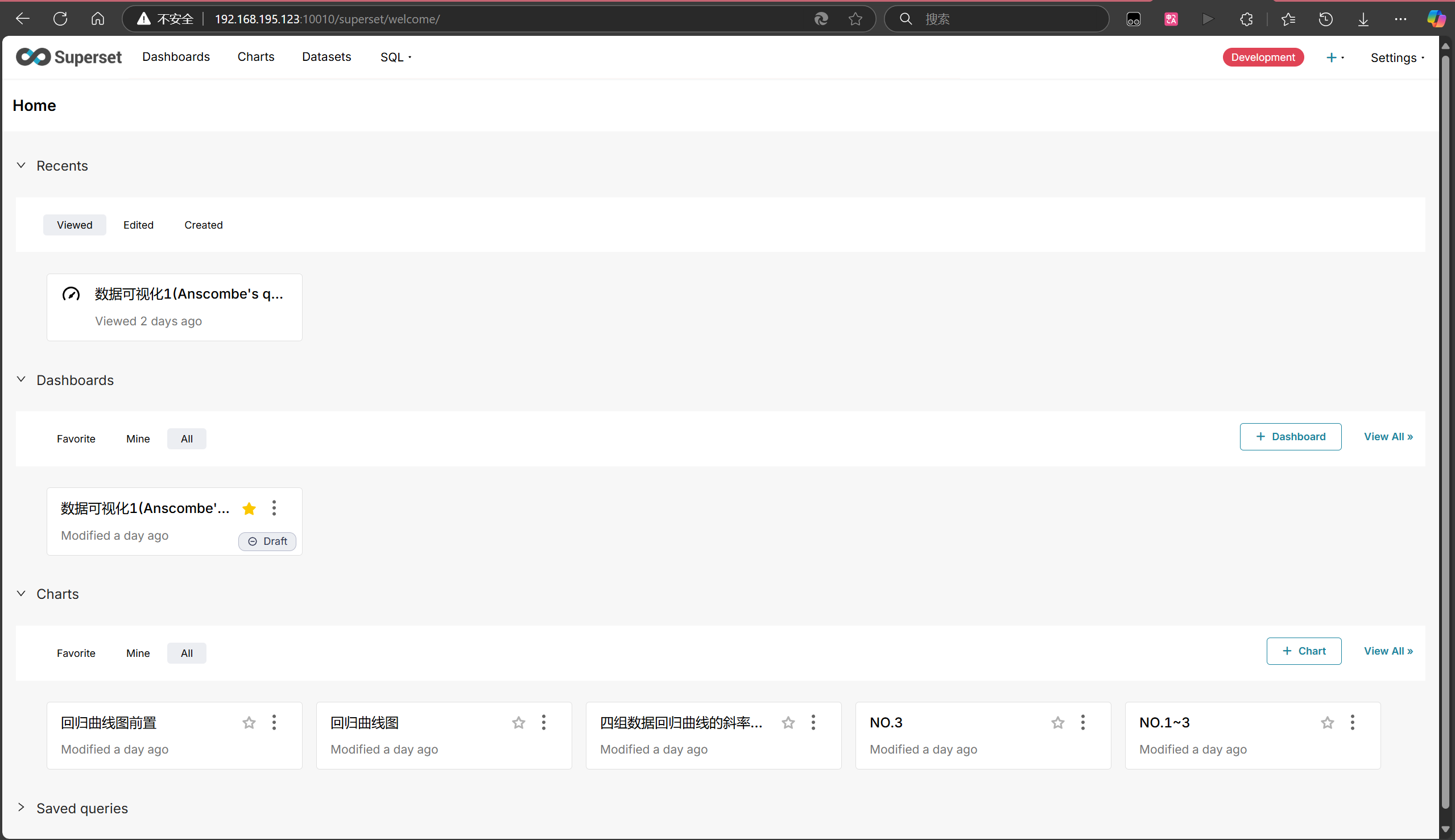 - 部署完成后,通过 NAS 的 IP 地址加端口号(例如 http://<NAS_IP>:8088)访问 Superset 的 Web 界面。