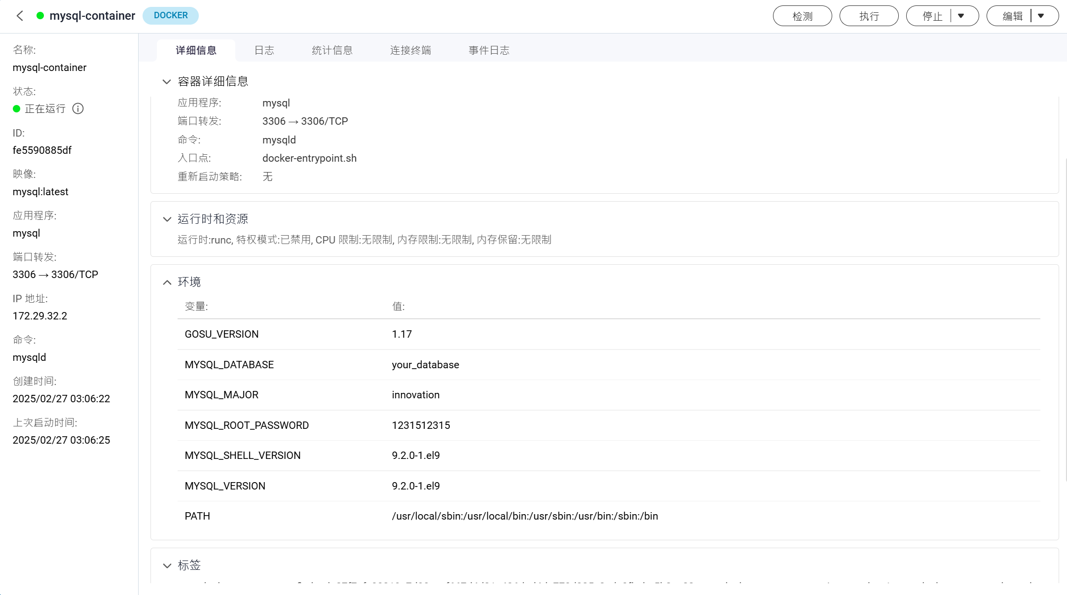 - 使用 Docker Compose 创建一个最新版本的 MySQL 数据库容器(例如 docker-compose.yml 中定义 MySQL 服务)。